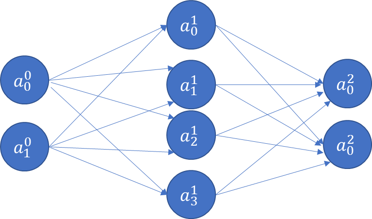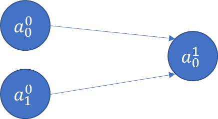Imagine a simple case where there is an input \(a^0\) and an output \(a^1\). (The superscript indicates the layer number, and is not the same as a^n!)